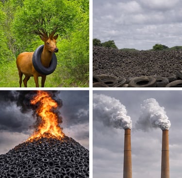 1- Environmental Pollution in Landfills: Discarding end-of-life tires in landfills poses a significant environmental threat, primarily due to their slow decomposition and the substantial space they occupy and secondary the risk of fire hazard due to accumolated tires in landfills.